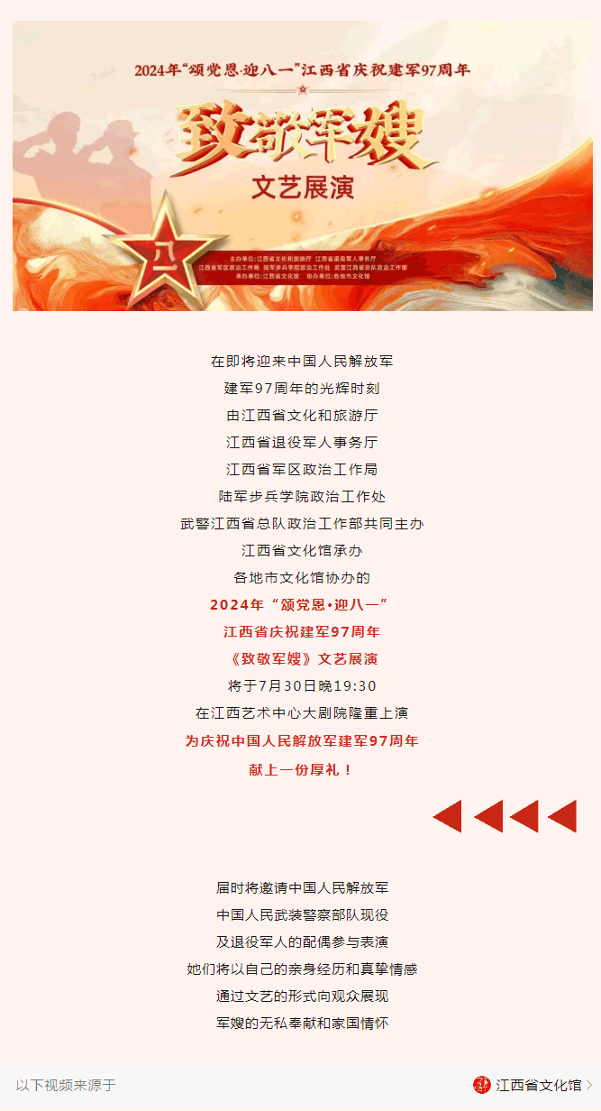 颂党恩·迎八一!邀您观看《致敬军嫂》文艺展演!