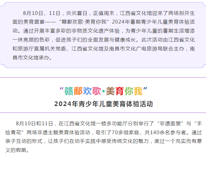 “赣鄱欢歌·美育你我”——2024年暑期青少年儿童美育活动在江西省文化馆精彩呈现
