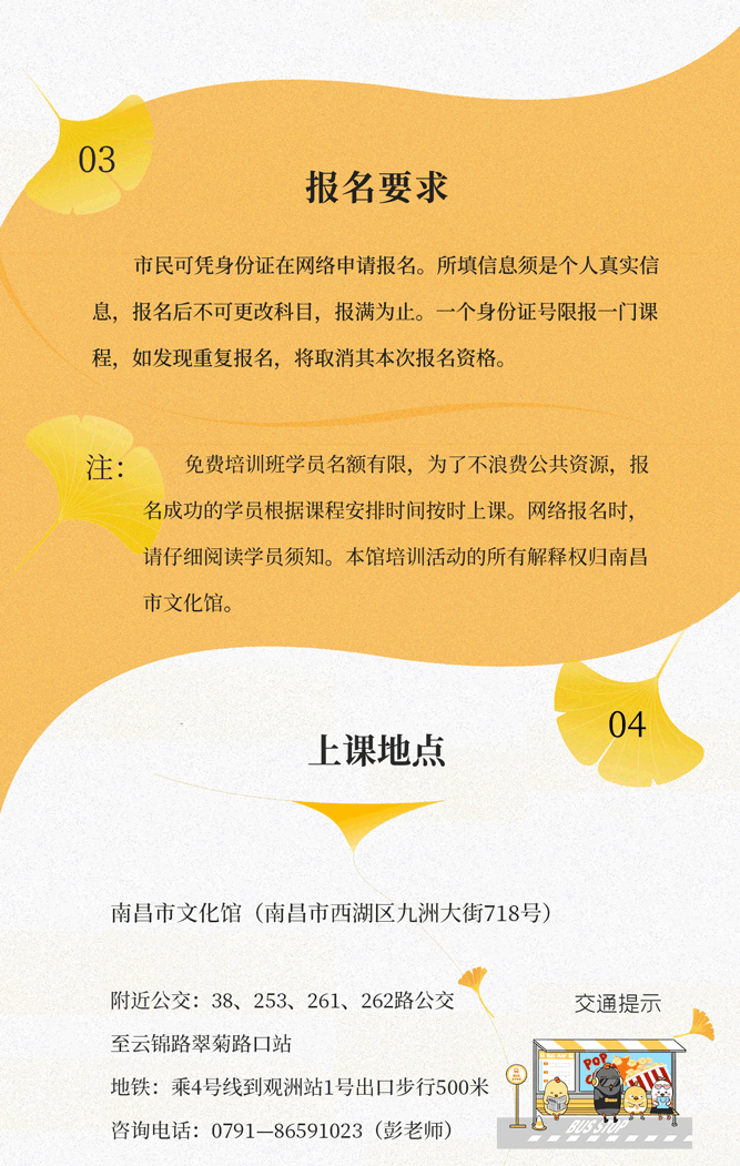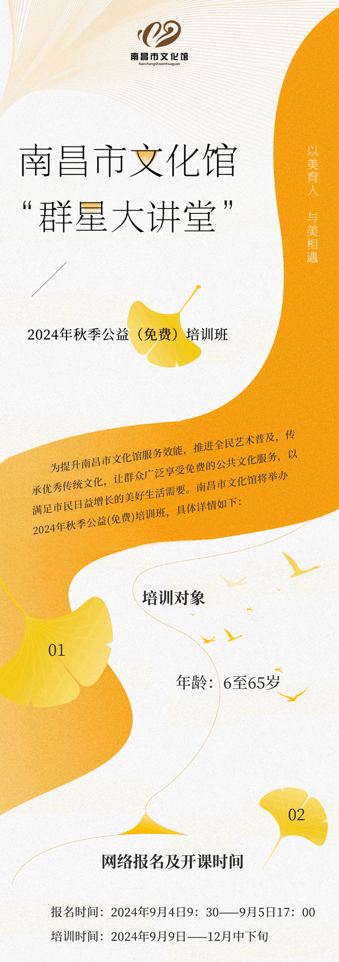 【百馆千万场 服务来共享】南昌市文化馆“群星大讲堂”2024年秋季公益(免费)培训班即将开班!