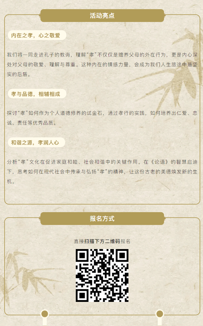 【活动预告】领读经典 | 《论语》第六讲之论语中的“孝”