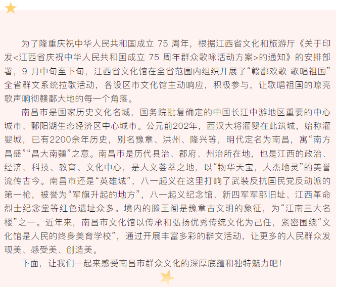 “赣鄱欢歌 歌唱祖国”全省群文系统拉歌活动“南昌篇”圆满落幕