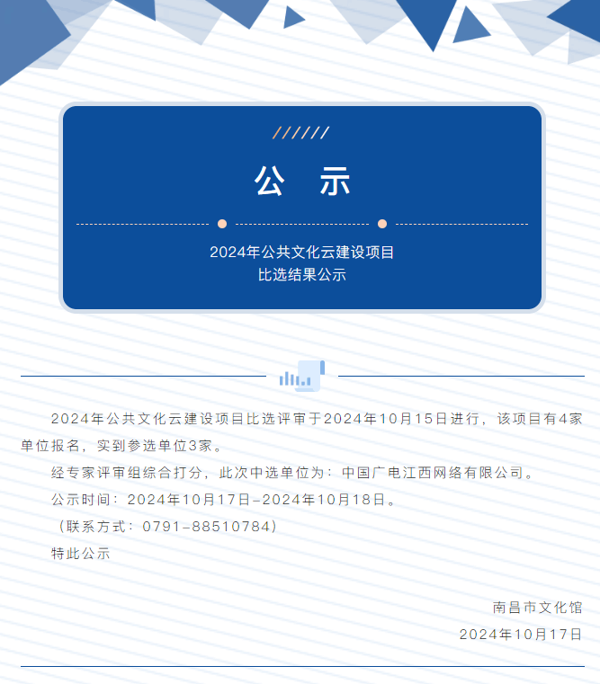 南昌市文化馆2024年公共文化云建设项目比选结果公示
