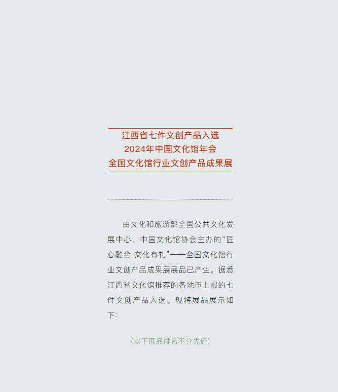 喜报丨江西省文化馆七件文创产品入选2024年中国文化馆年会全国文化馆行业文创产品成果展