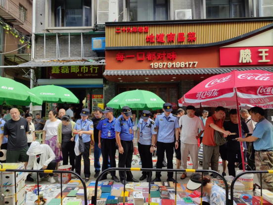 为进一步净化仿古街文化市场环境,规范出版物市场经营秩序,南昌市文化市场综合执法支队积极联合东湖区委宣传部、滕王阁街道办事处等属地相关部门周末“不打烊”,开展联合整治行动。
