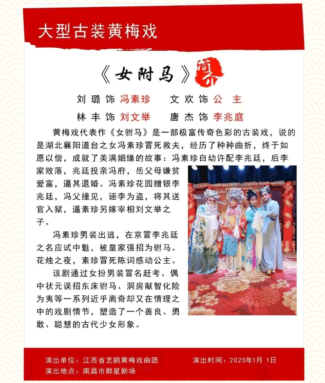 【免费索票】福利来袭!南昌市文化馆邀您看好戏!黄梅戏《女驸马》重磅上演,抢先预约!