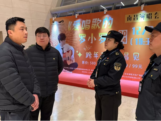 为做好“跨年夜?南昌见”2025年南昌市元旦跨年夜活动安全保障工作,12月31日晚,南昌市文化市场综合执法支队组织开展文化市场安全生产检查行动,全面排查整治文化市场重大安全风险隐患,筑牢抓实安全生产各项工作,全力守护人民群众生命财产安全。