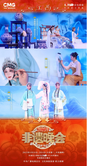 江西主秀会以青花瓷为创意主元素,通过瓷乐队演奏、舞蹈秀演、赣剧演绎以及融合瓷板画四种方式呈现璀璨陶瓷文化。此外琳琅满目的非遗集市,汇集着全省非遗精品。红茶制作技艺(宁红茶制作技艺)、景德镇手工制瓷技艺、刻铜(贵溪錾铜雕刻)、南昌米粉烹饪技艺等为央视舞台增添浓浓的赣鄱非遗年味!