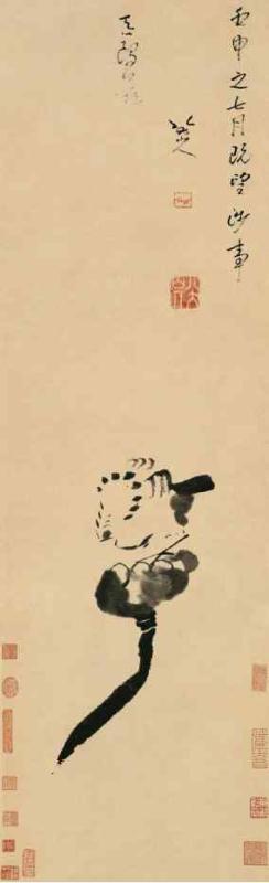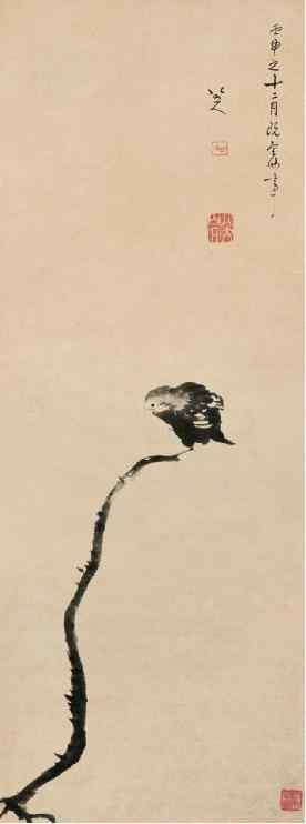 中国的文人画到八大山人,在笔墨的运用上达到前所未有的高度。如此精萃的笔墨,一点一划,是其意匠惨淡经营所得;其构图之缜密,大开大合,画外有画,意境空阔,余味无穷,绝不见刻意为工的痕迹,达到了出神入化的境界;八大山人的取物造型,在写意画史上有独特的建树,他画面的形象是主客观统一的产物,以神取形,以意舍形,终能形神兼备,言简意赅。