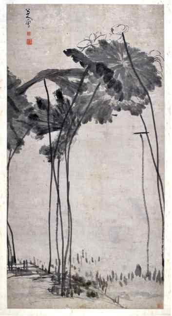 [Appreciation] The low-angle view was used to painted the ink-wash painting. Bada Shanren broke through former painters' painting methods in terms of painting theme, composition and style. Apply the dry, moist, thick and thin ink color changes and rolling touches to show smooth and slim lotus stems, giant leaves and graceful lotus flowers, engendering a strong visual effect. It not only shows the artistic conception of “a vast expanse of green lotus leaves linking with the skyline”, but also a free and generous demeanor as well as a leisurely spiritual attainment.