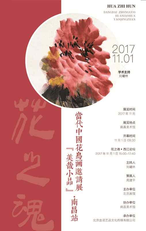 【美术馆资讯】由北京画馆主办,南昌美术馆协办,北京金诺艺品文化传媒有限公司承办的“花之魂——当代中国花鸟画邀请展”将于11月1日上午9点30分在南昌美术馆开幕。