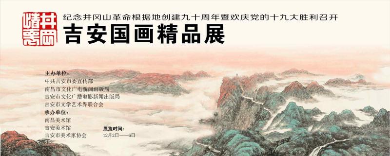 【美术馆资讯】由中共吉安市委宣传部、南昌市文化广电新闻出版局、吉安市文化广播电影电视新闻出版局、吉安市文学艺术界联合会主办,南昌美术馆、吉安美术馆、吉安市美术家协会承办的纪念井冈山革命根据地创建九十周年暨喜迎党的十九大胜利召开“井冈情怀”吉安国画精品展将于2017年12月2日在南昌美术馆开展。