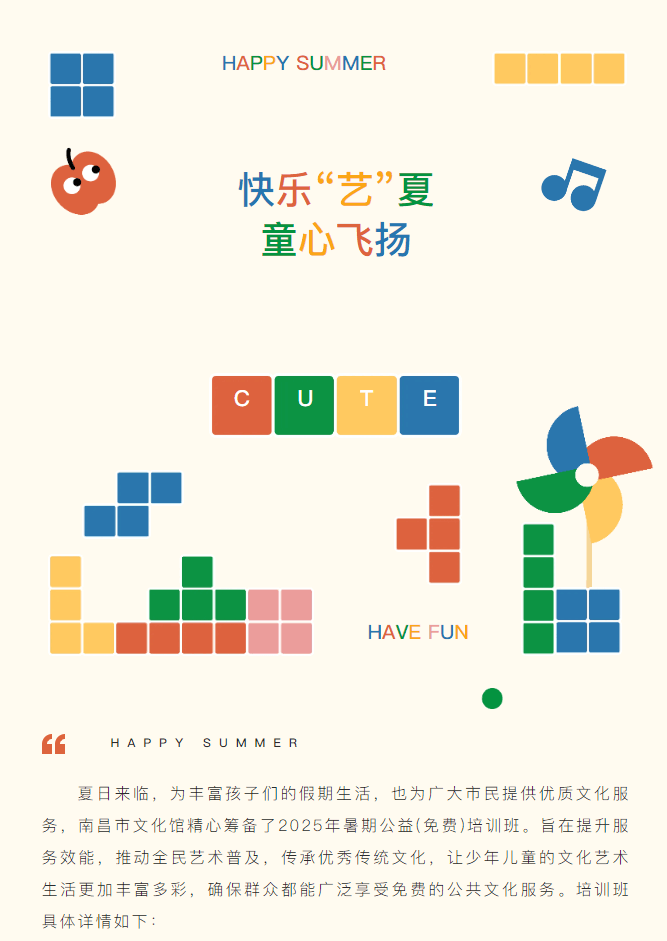 【百馆万场 赣鄱共享】快乐“艺”夏——市文化馆暑期公益课即将开启