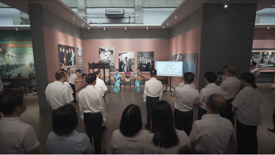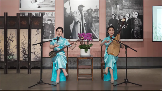 来自上海评弹传习艺术所(上海评弹团)的艺术家们在展厅现场演唱评弹乐曲《云老三唱》,以吴侬软语和三弦琵琶旋律勾勒出陈云同志的丰功伟绩,让革命先辈的崇高情怀在传统艺术韵味中娓娓道来。这也是我馆首次引入评弹艺术形式,不仅突出赣沪文化交融特色,更创新实现传统文化与红色文化深度结合,为观众带来耳目一新的沉浸式红色文化体验。