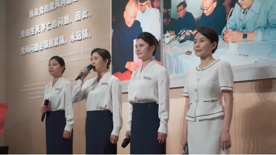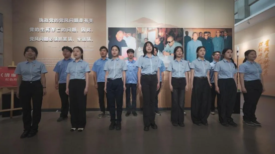 活动最后,来自江西洪都航空工业集团有限责任公司的党员干部代表与现场的参与者齐声高唱《没有共产党就没有新中国》,铿锵的旋律在重温革命先辈精神的同时,更激发新时代奋斗者的初心使命。