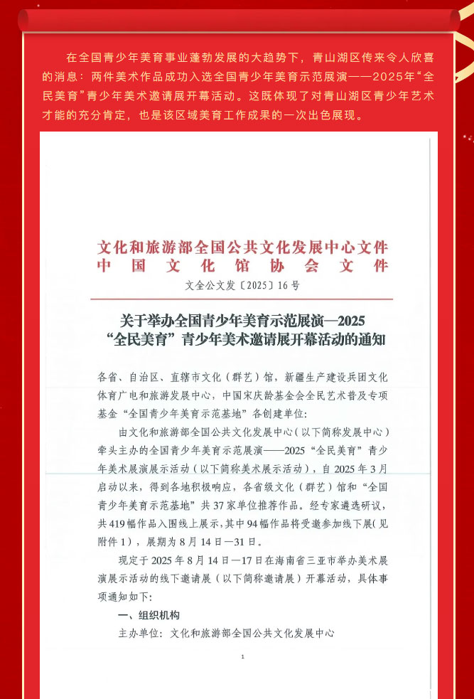 【县区动态】喜报!南昌市青山湖区2件作品入选2025年“全民美育”青少年美术邀请展