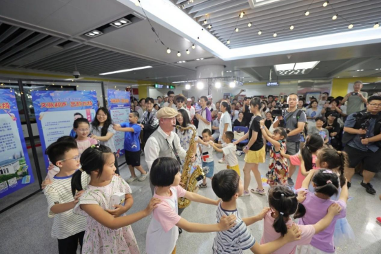 魔术师带来的魔术《相信奇迹》掀起了活动小高潮,让乘客们近距离感受魔法的“奇迹时刻”。独舞《悄悄长大》用俏皮灵动的舞姿诠释了成长的美好。压轴登场的萨克斯独奏《海阔天空》《爱你在心口难开+失恋阵线联盟》串联起跨时代经典旋律,引发全场共鸣,现场乘客们纷纷跟着旋律轻声哼唱。