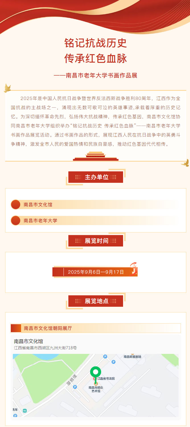 【展览预告】“铭记抗战历史 传承红色血脉”——南昌市老年大学书画作品展预告