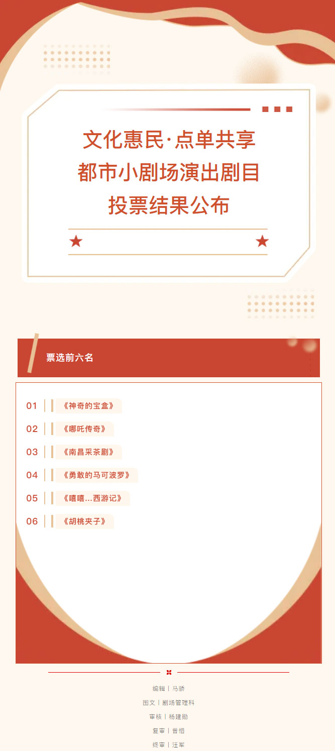 【心愿点单】“文化惠民·点单共享”都市小剧场演出剧目投票结果公布