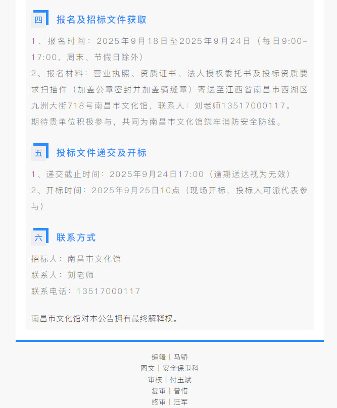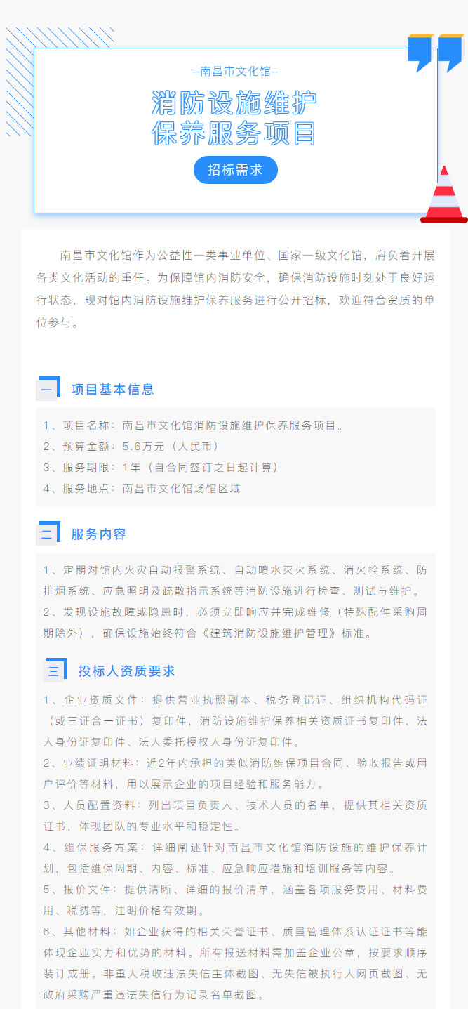 南昌市文化馆消防设施维护保养服务项目招标需求