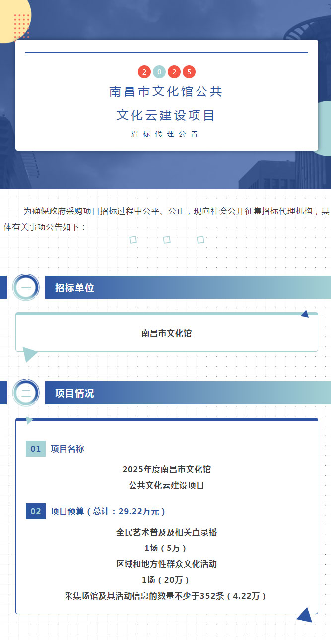 2025年度南昌市文化馆公共文化云建设项目招标代理公告