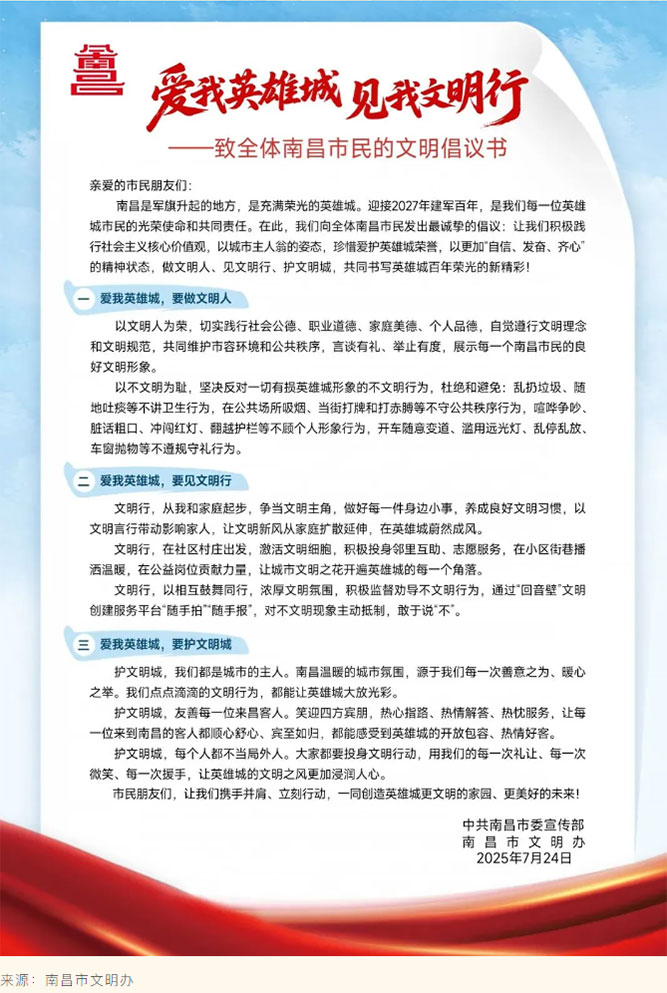 《爱我英雄城 见我文明行——致全体南昌市民的文明倡议书》