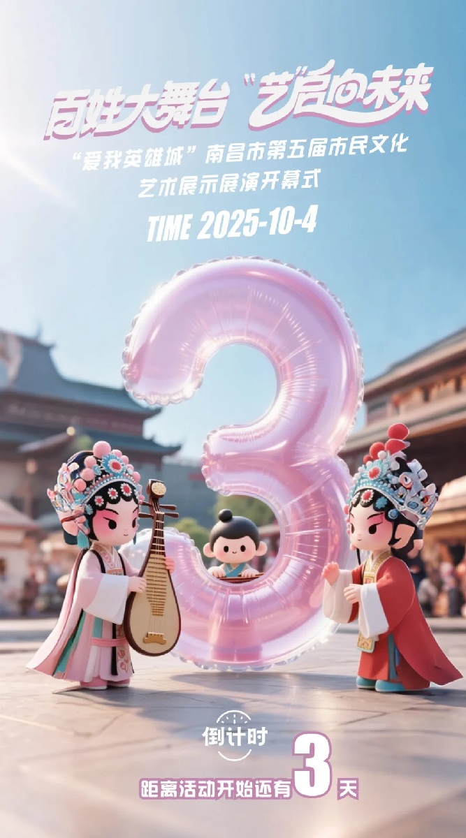 百姓大舞台 “艺”启向未来丨 “爱我英雄城”南昌市第五届市民文化艺术展示展演开幕式倒计时3天!
