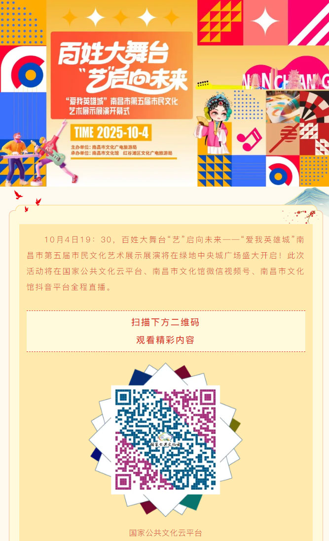 直播预告丨“爱我英雄城”南昌市第五届市民文化艺术展示展演明晚启幕