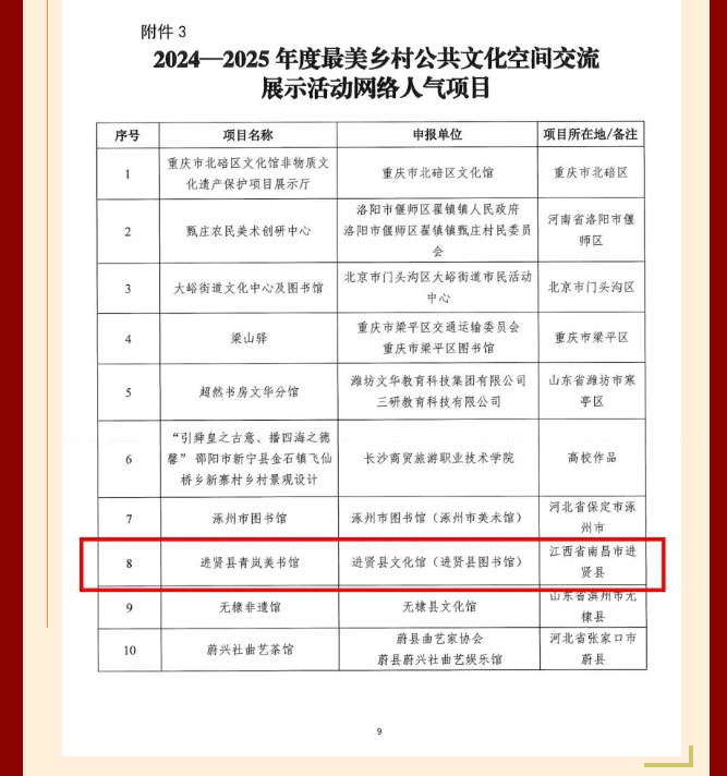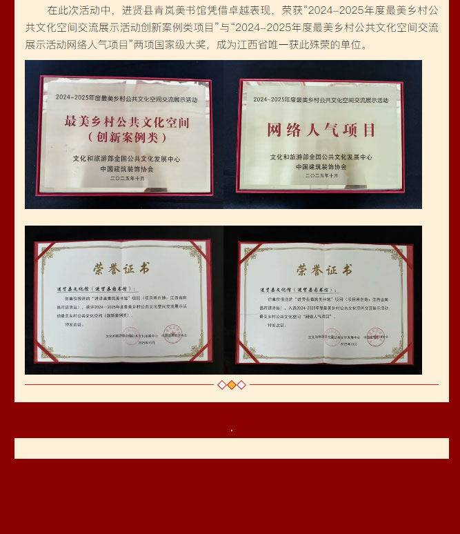 【县区动态】重磅喜讯!进贤县文化馆(图书馆)荣获两项国家级大奖