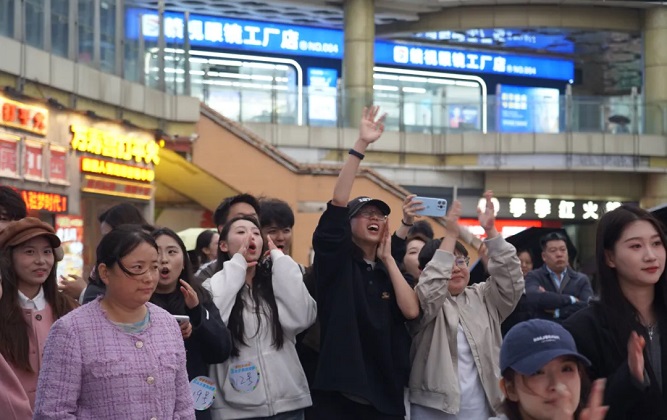 当日14时30分,初赛正式开始,现场人气爆棚,过往行人纷纷驻足围观。歌唱、器乐、舞蹈等类型的节目轮番上演:流行歌曲劲爆动感,民歌演唱韵味悠长,尺八、陶笛等中国传统乐器演奏令人耳目一新,民族舞与街舞的碰撞更是点燃了全场热情。经过3个多小时的才艺展示,45组选手脱颖而出,成功晋级复赛。