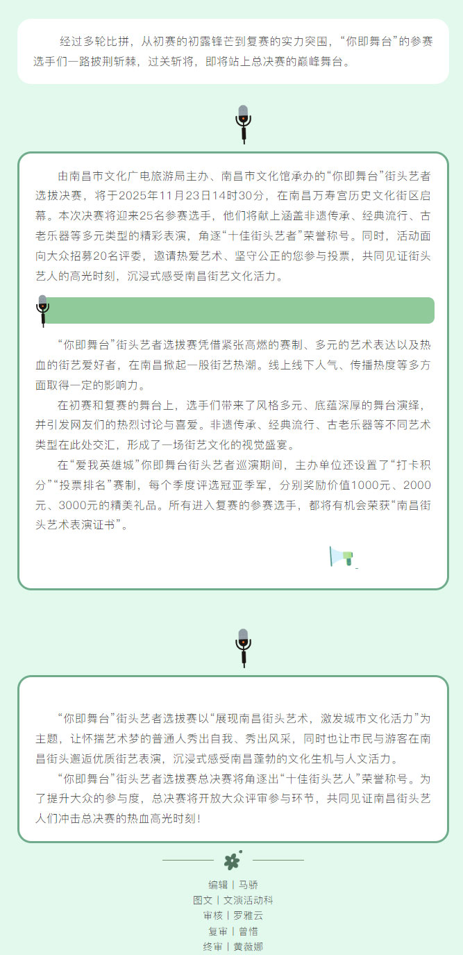 【爱我英雄城】街头逐光,艺战成名!南昌十佳街头艺人赛即将上线