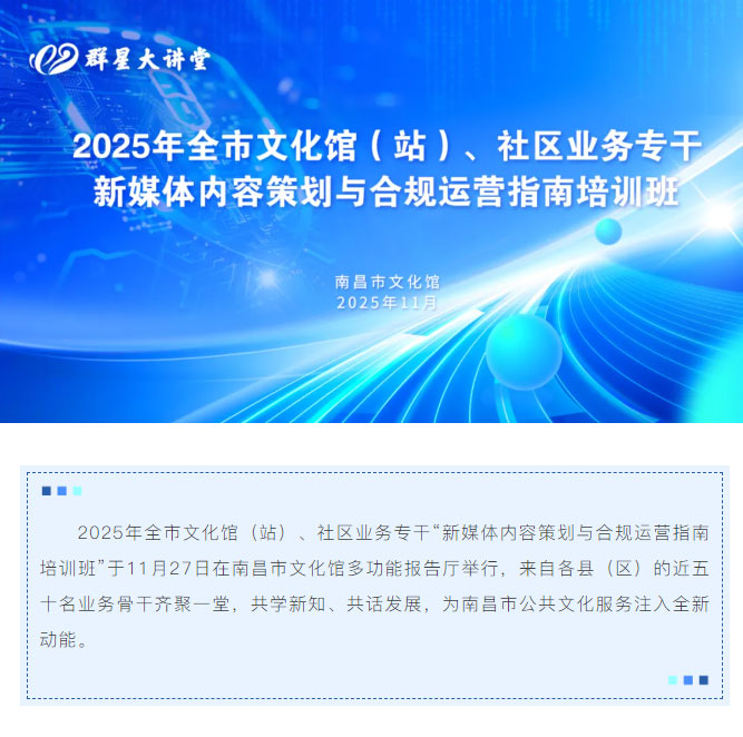 【群星大讲堂】赋能新媒体时代!2025年全市文化馆(站)业务专干培训顺利举行!