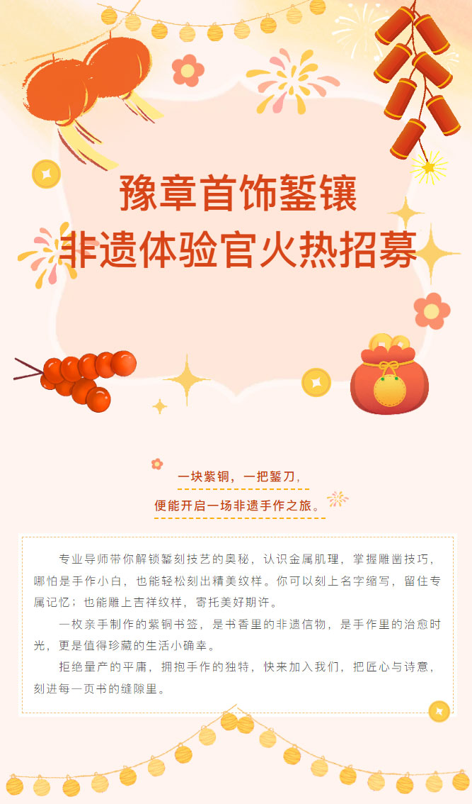 【招募令】指尖上的“金”喜:豫章首饰錾镶非遗体验官火热招募