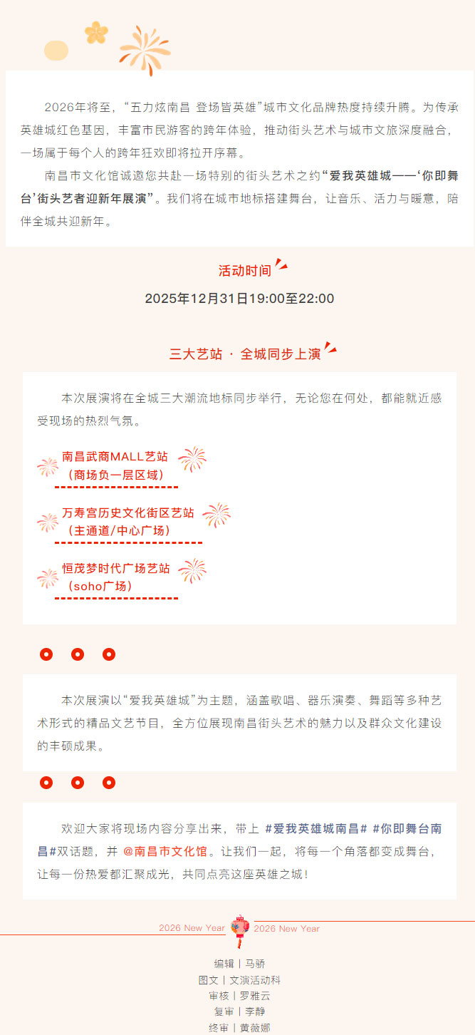 【爱我英雄城 跨年南昌见】南昌街头燃情跨年|12.31音乐派对,解锁新年第一份热闹