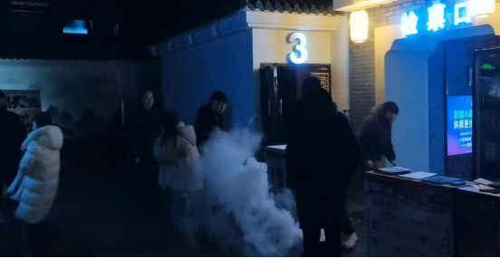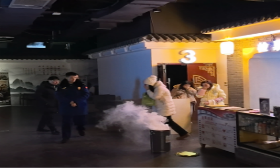 本次演练设定为影院影厅内因电气线路故障引发“火情”,产生大量烟雾,并有观众“被困”。上午11时,监控室烟感触发报警后,影院立即启动应急预案,第一时间拨打119报警,并通过应急广播引导观众有序疏散。工作人员迅速组成初起火灾扑救组、疏散引导组、救护组,各司其职,有序开展消防灭火、疏散、救援工作。