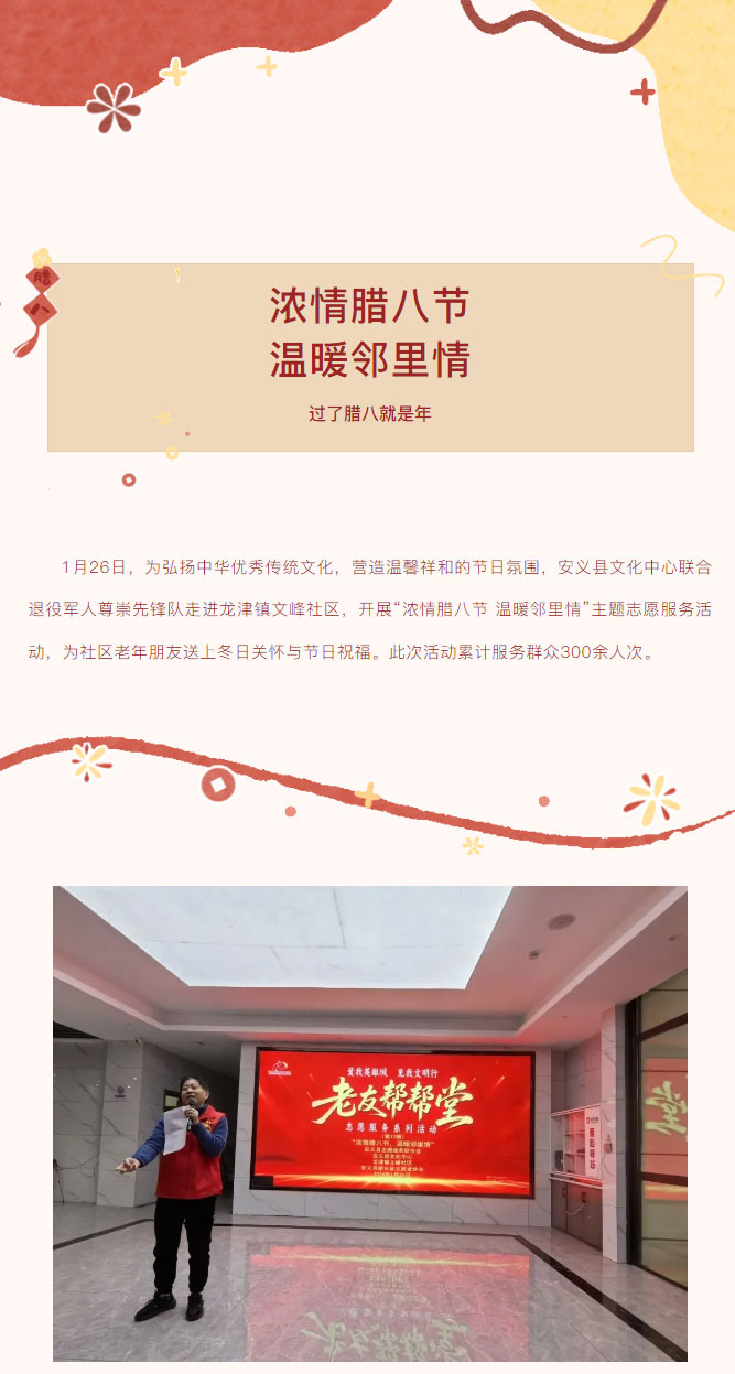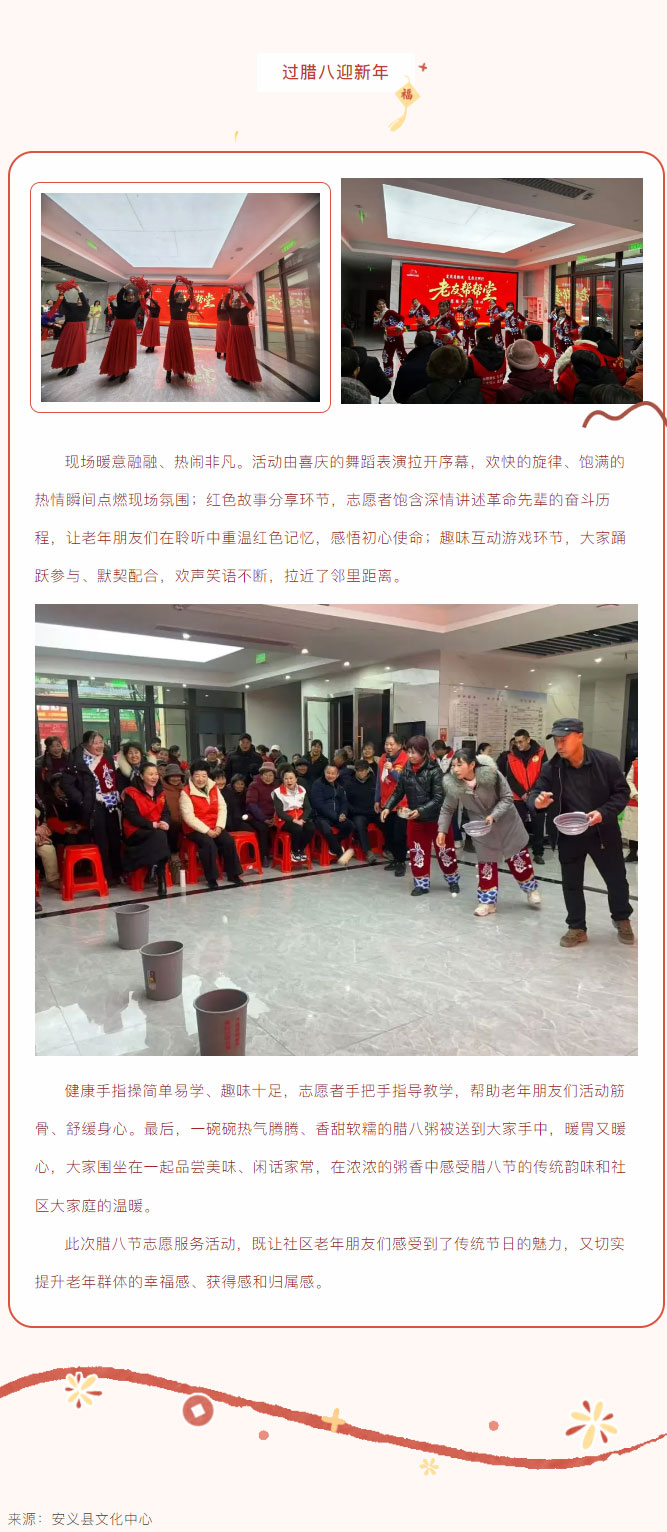 【县采飞扬】我们的节日·腊八 | 安义县文化中心开展“浓情腊八节 温暖邻里情”主题志愿服务活动