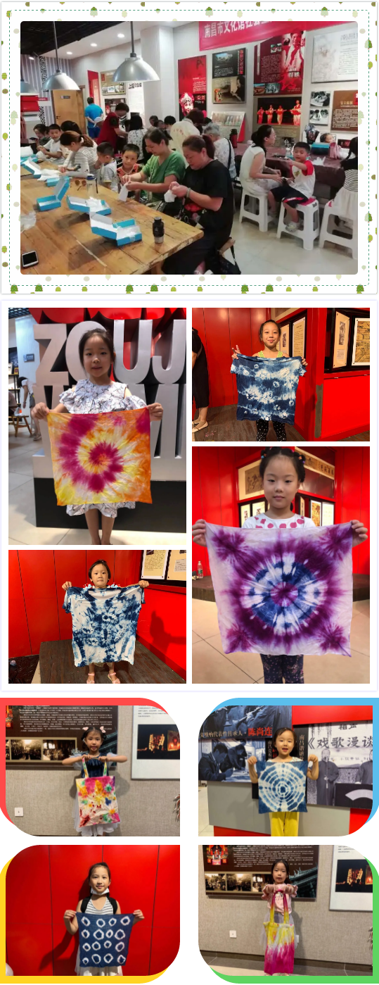 8月,“我是小小传承人”四期扎染绘染主题体验课圆满结课,专业老师带领20余名小伙伴们学习绘染布画的相关知识及技艺,通过制作方巾、T恤、帆布包等不同的绘染作品,让孩子们亲身体验到我市非物质文化遗产的独特魅力。