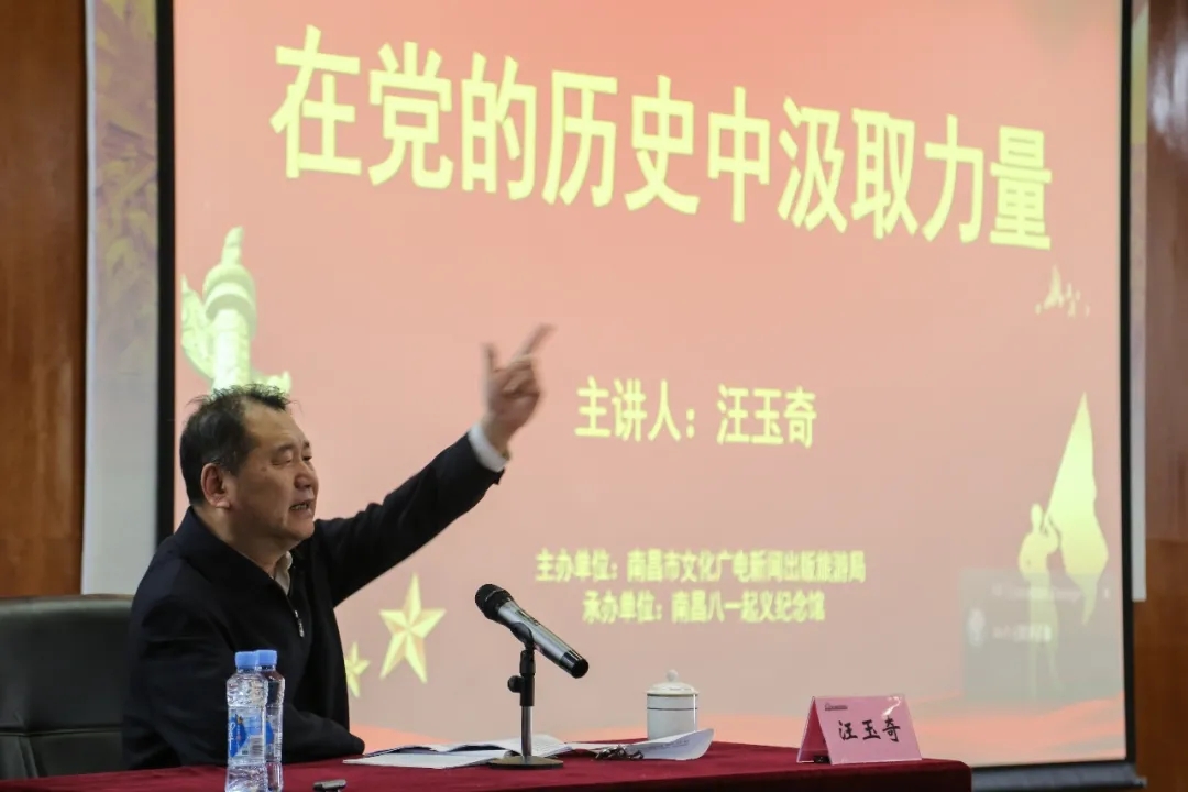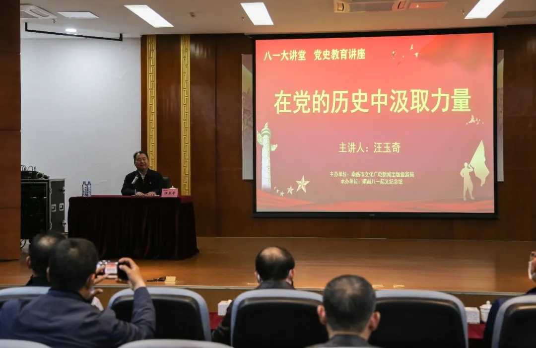 为贯彻落实习近平总书记的重要讲话精神,充分发挥红色场馆在党史学习教育中的排头兵作用,2月24日下午,由市文广新旅局主办,南昌八一起义纪念馆承办的党史学习教育讲座——《在党的历史中汲取力量》在全省率先开讲!讲座邀请江西省社会科学院首席研究员汪玉奇授课,市委党校、市委组织部领导、局机关、局属单位干部职工及社会各界党史爱好者近100人参加。
