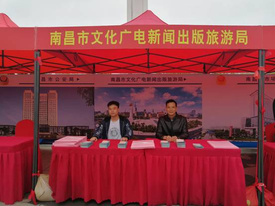 南昌市文化广电新闻出版旅游局作为协办单位之一,在本次活动中向现场的群众宣传普及了新《著作权法》的相关知识,介绍了作品版权登记的意义和流程,鼓励大家尊重作品版权,用法律武器保障自己的版权权益。通过宣传展板宣传、发放宣传手册、宣传书签等方式为群众提供版权保护的政策法规的知识。实现了良好的宣传效果,受众达300余人。