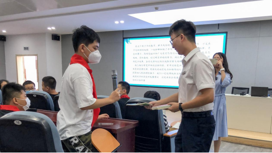 南昌市小平小道陈列馆讲解员周泽涛,走进南昌市外国语学校,讲述主题为《战“疫”一线党旗红》的开学第一课。
