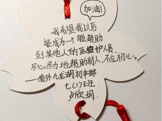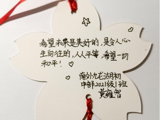未来就像是蓝天,而同学们便是蓝天上展翅翱翔的雏鹰。拿起笔,孩子们满怀期待,写下了对未来的无限期望。无论是未来对祖国美好期望,畅想祖国未来的美好图景,还是对未来的自己有无限的设想,希望将来可以成为更好的自己,都是孩子们对理想生活的追求。一百年前,青年们为了国家之安危将生死置之度外,让国家有更好的发展;而一百年后,这些祖国的花朵们也在实现国家美好未来的道路上不断前进。