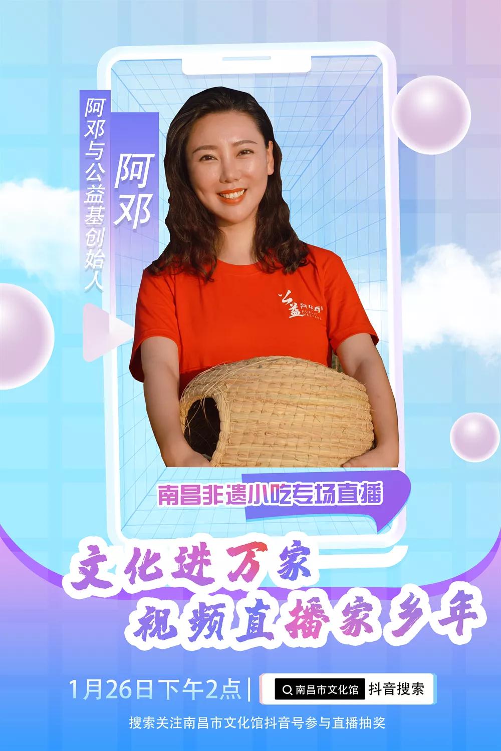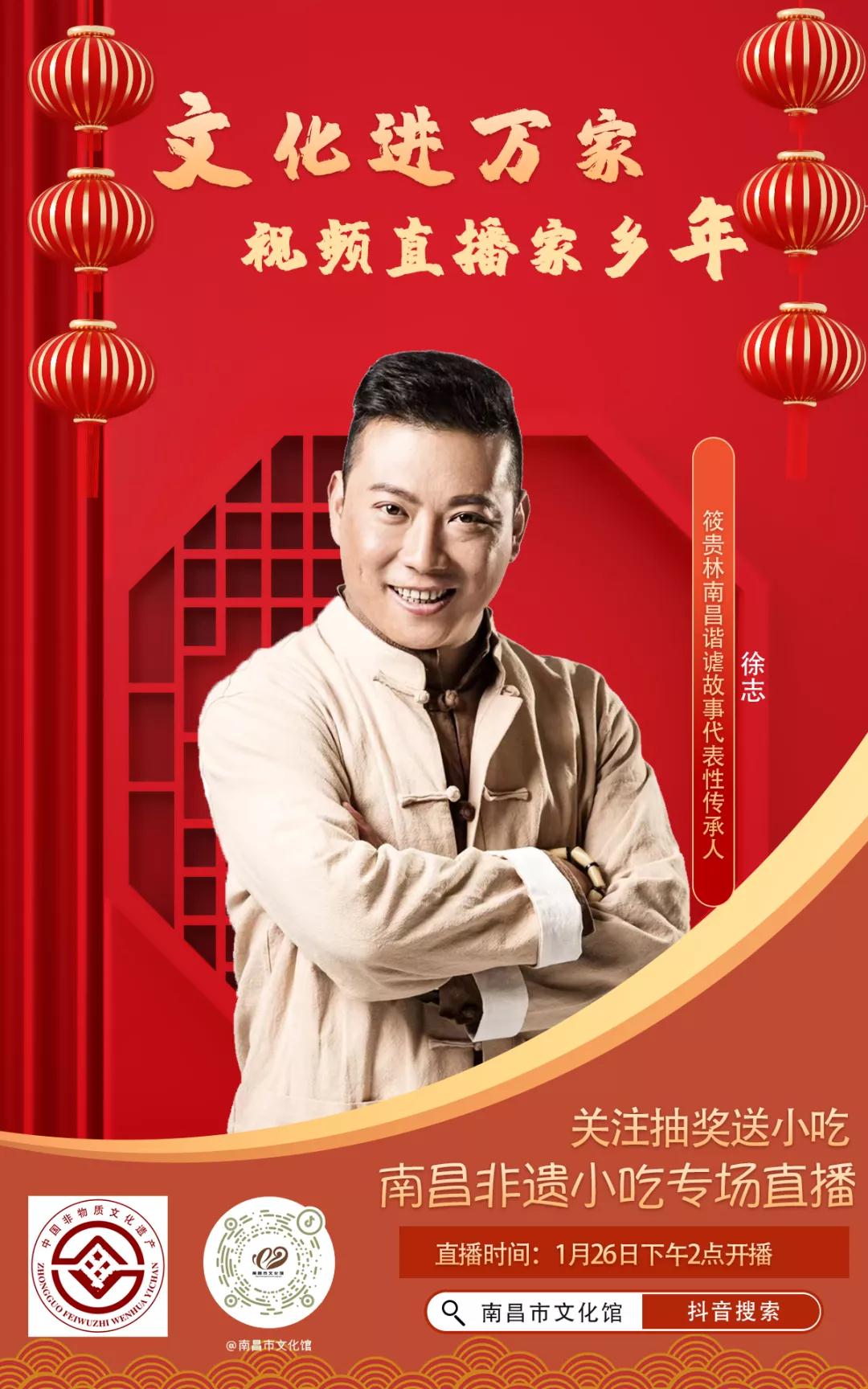 为积极响应中央宣传部“我们的中国梦”——文化进万家活动,营造欢乐、祥和、喜庆的中国年氛围,1月26日,南昌市文化馆通过抖音平台进行“视频直播家乡年,我的江西年”南昌非遗小吃专场直播,记录家乡的年俗味道,传递记忆中的乡音年味,直播间各种好吃的、好玩的、好看的非遗小礼品等你来拿!