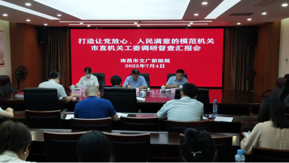 7月4日,市直机关工委委员廖文生带队到市文广新旅局调研督查打造让党放心、人民满意的模范机关工作,对模范机关创建做法、成效等进行现场调研和指导。
