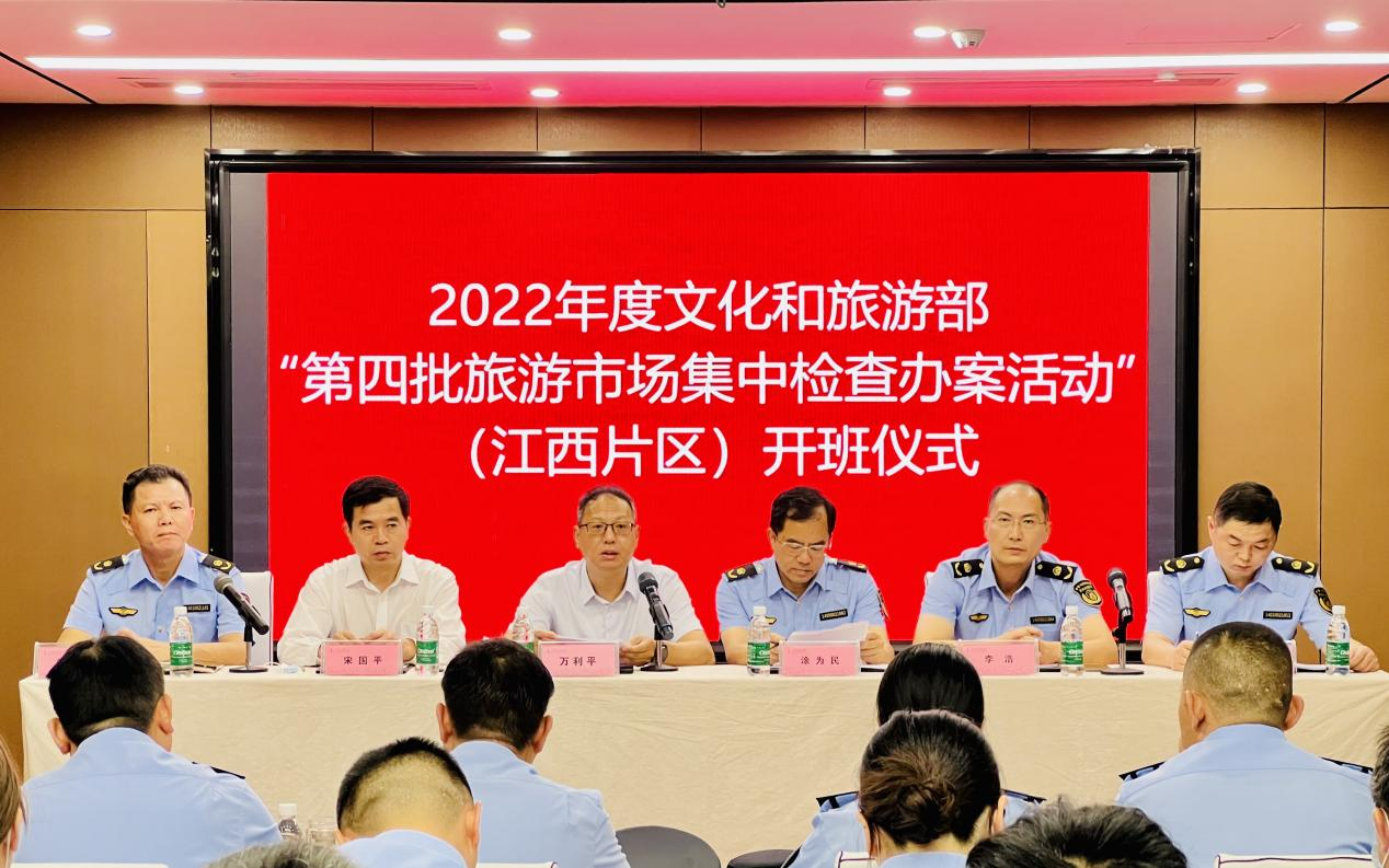 6月27日在文化和旅游部文化市场综合执法监督局的部署下,江西、河南、安徽、福建四省片区的文化市场综合执法骨干在南昌举办了“第四批旅游市场集中检查办案活动”培训班。江西省文化和旅游厅文化市场综合执法监督处处长涂为民、四级调研员李浩及南昌市文化广电新闻出版旅游局党组书记、局长万利平,局党组成员、副局长宋国平,执法监督科科长陈震等出席开班式。