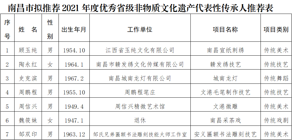 南昌市拟推荐2021年度优秀省级非物质文化遗产代表性传承人推荐理由
