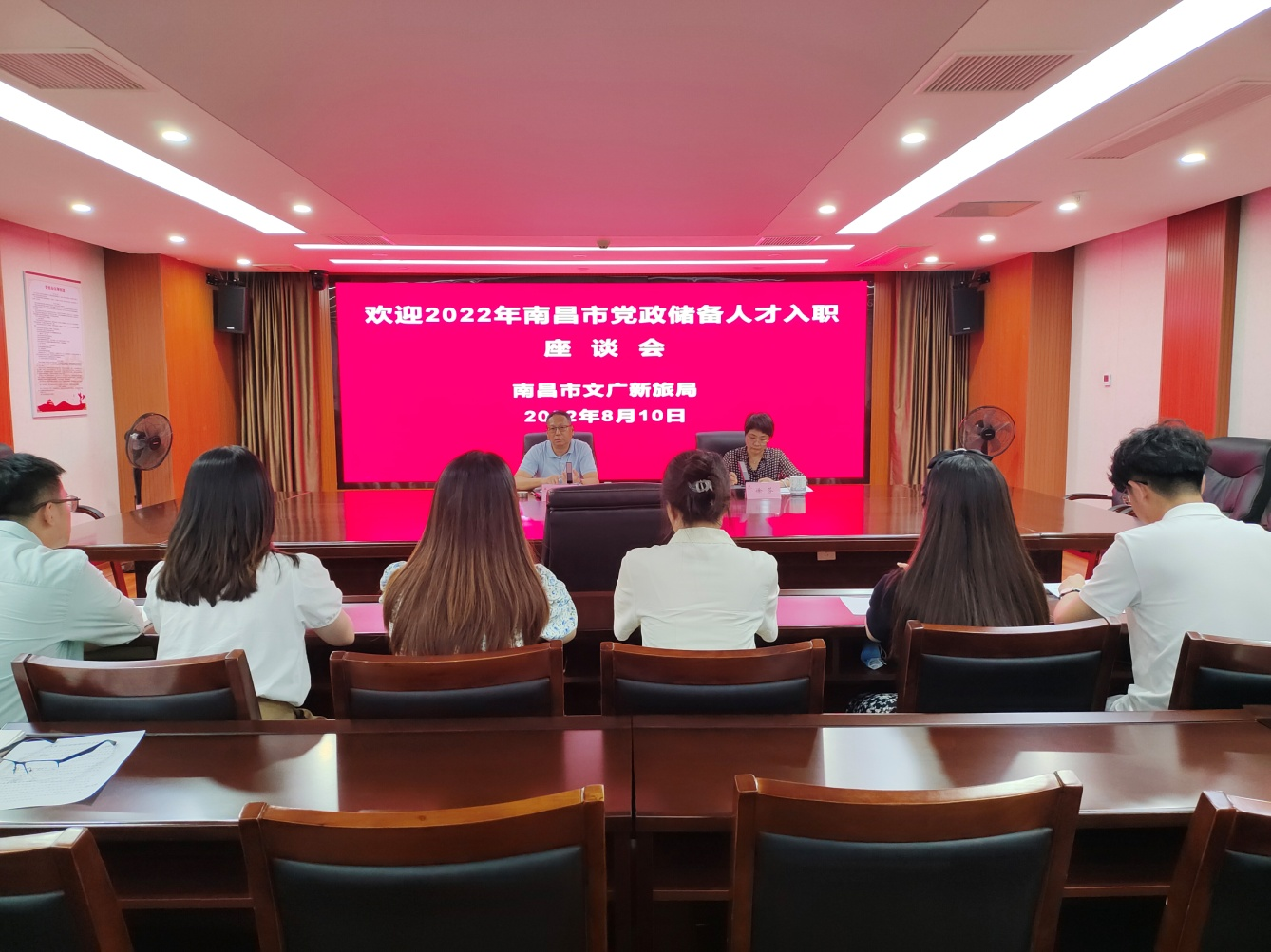 2022年8月10日下午,南昌市文化广电新闻出版旅游局“2022年南昌市党政储备人才入职座谈会”在局八楼会议室召开。局党组书记、局长万利平同志出席座谈会并讲话,局党组成员、二级调研员徐芬同志主持会议。