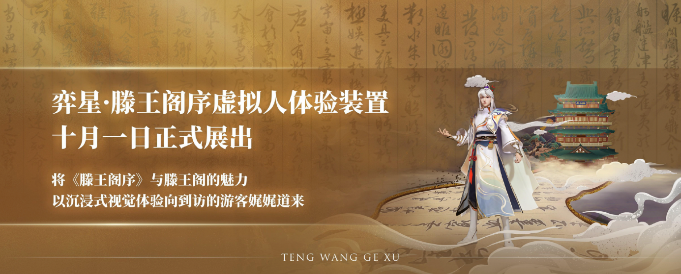 此外,《王者荣耀》也将借助数字手段为大众提供沉浸式“弈星·滕王阁序”虚拟人导览体验,体验装置于10月1日起正式落地滕王阁。届时,游客将能够在滕王阁观赏由动画场景再现的盛唐美景与《滕王阁序》书法画卷,弈星将踏着画卷缓缓走来,通过朗诵《滕王阁序》表现滕王阁的历史风韵。