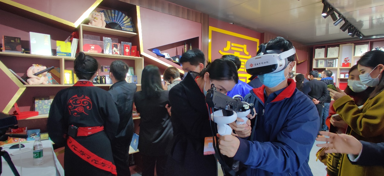 本次“南昌馆”以“物华天宝·人杰地灵 天下英雄城”为主题,以八一馆、新四军陈列馆、南昌舰为红色主线,以海昏侯、滕王阁、八大山人、万寿宫、南昌印钞为文创内核,彰显文旅融合,更通过南昌市博物馆和江西泰豪的VR、AR、AI、VFX等技术的加持,将众多文化、考古成果进行数字化展现,涵盖南昌历史文化、红色文化、民俗文化、文旅宣传等一系列内容,让游客全方面互动体验,更可以通过沉浸式答题环节中了解一个个红色故事,回答正确者还能以游客头像生成军旅元素的照片。