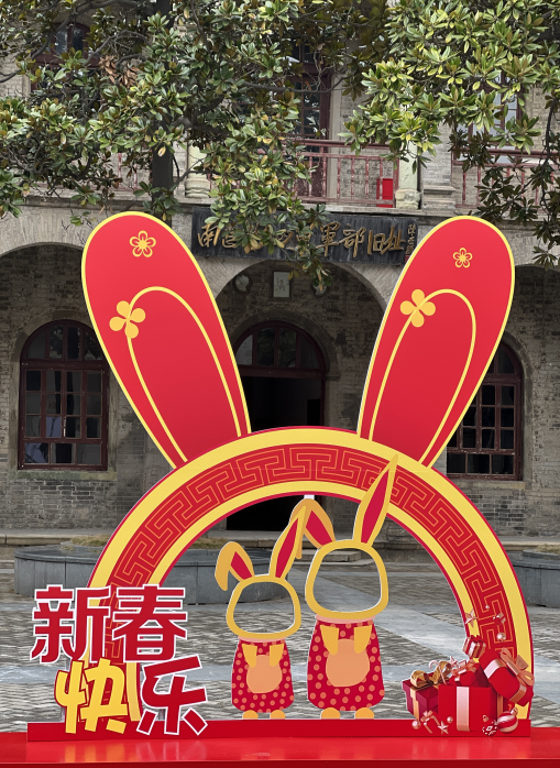 在南昌新四军军部旧址陈列馆新年氛围的打卡墙