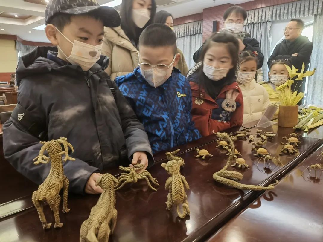 巧学红色历史,非遗棕编润童心。游客在非遗传承人的现场教授下,经过穿、拉、折、编扣、打结等方法,编织成各种动物造型的一种手工艺品,飞禽走兽、花鸟鱼虫,形态美观、栩栩如生,深得孩子们的喜爱。