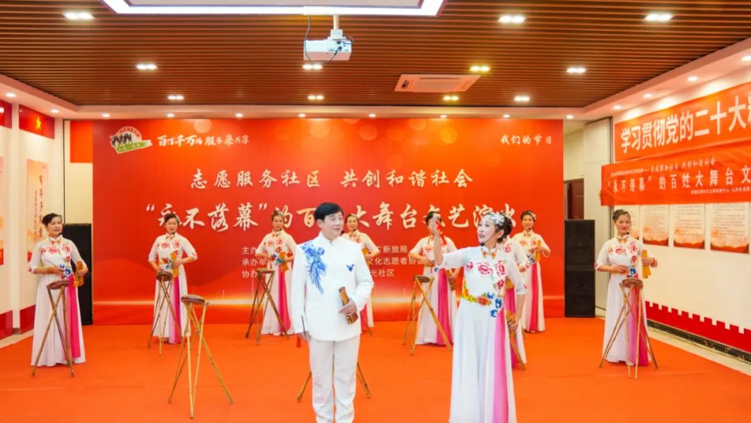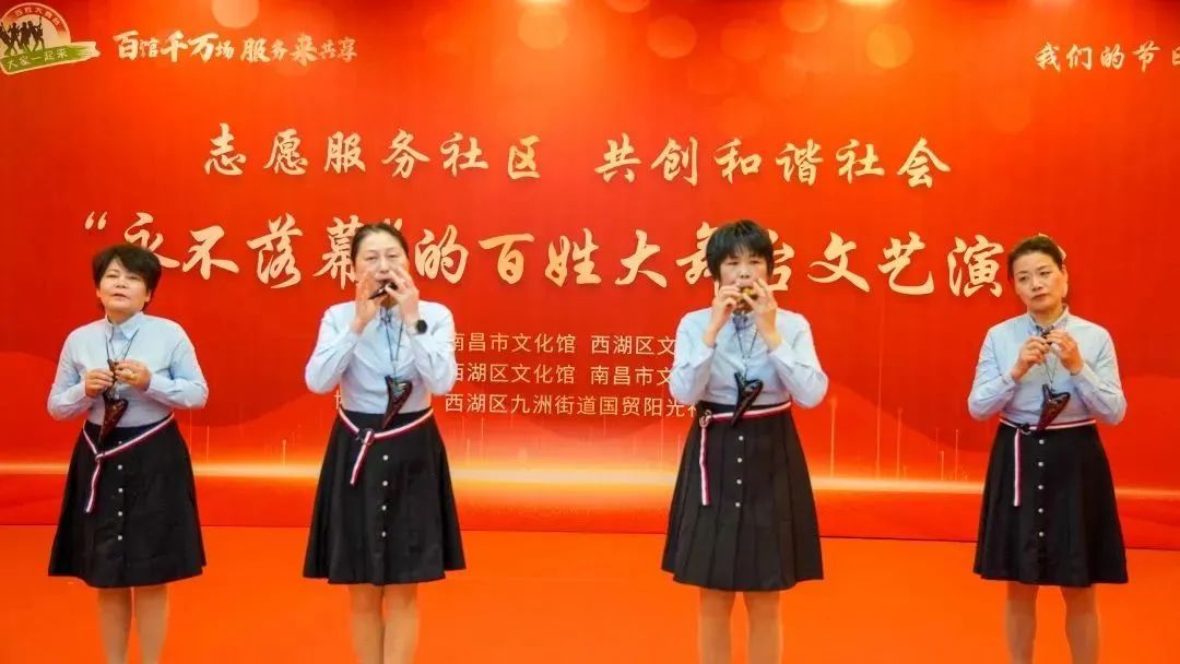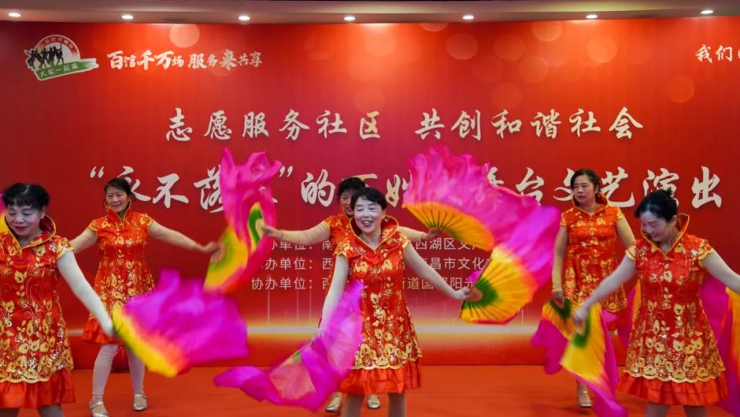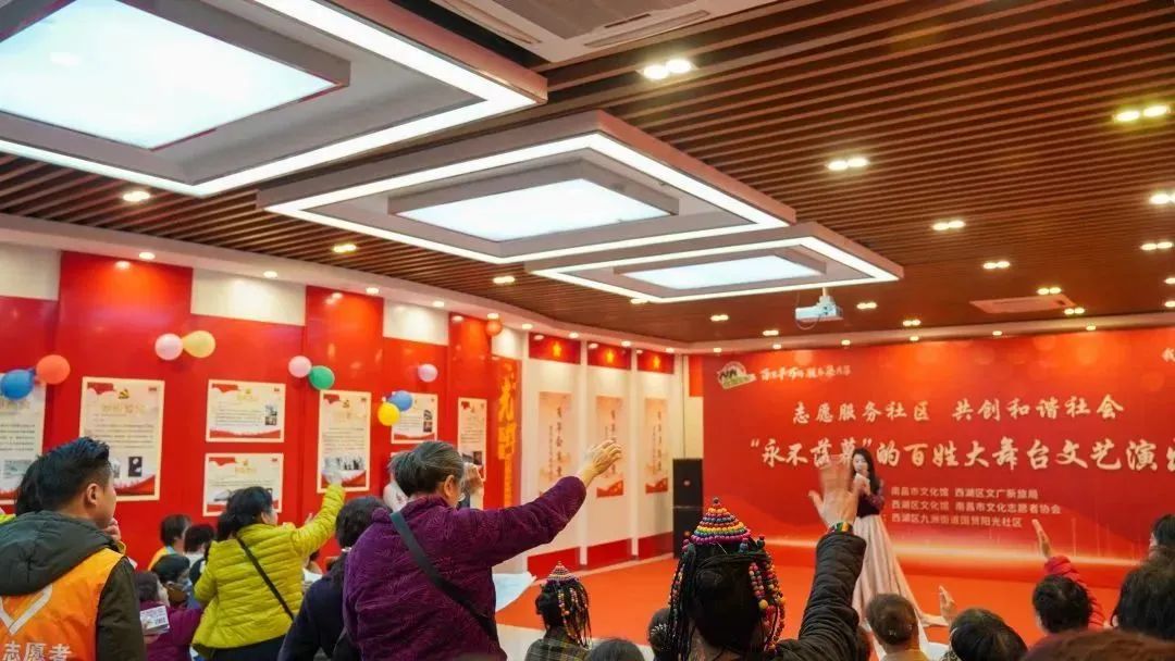 为丰富我市群众精神文化生活,推动和谐社区建设,提高社区居民幸福指数,2月23日,由南昌市文化馆、西湖区文广新旅局共同主办,西湖区文化馆、南昌市文化志愿者协会承办的“志愿服务社区 共创和谐社会” ——“永不落幕”的百姓大舞台文艺演出在西湖区国贸阳光社区成功举办。此次活动以 “我为群众办实事”为落脚点,突出群众演、演群众、乐群众的亮点,以群众喜闻乐见的艺术形式为社区居民送上了精彩绝伦的文艺演出。